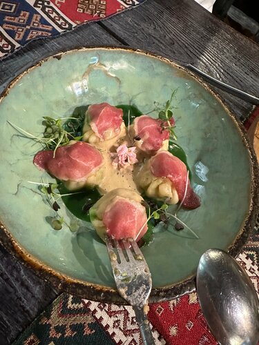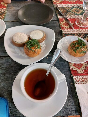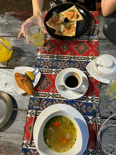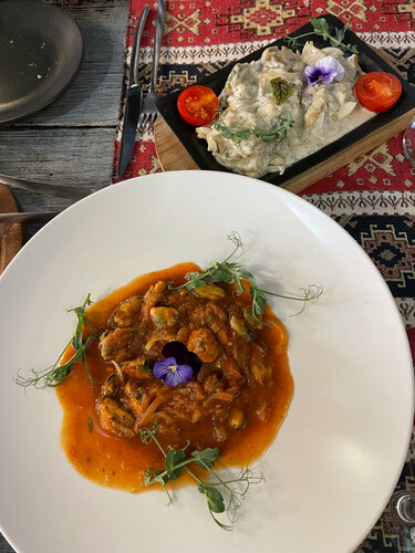 Были 15.10.25. супер вежливый персонал, колоритный интерьер, интересные блюда с оригинальной подачей. Окончание летнего сезона никак не отразилось на качестве сервиса. Рекомендую к посещению. Очень вкусно. Обедали, потом вернулись вечером пить кофе с десертом.
