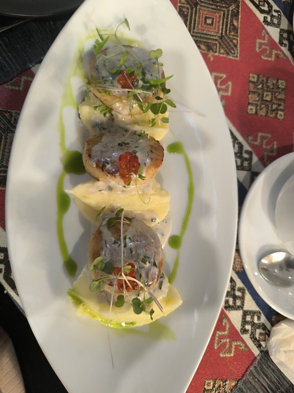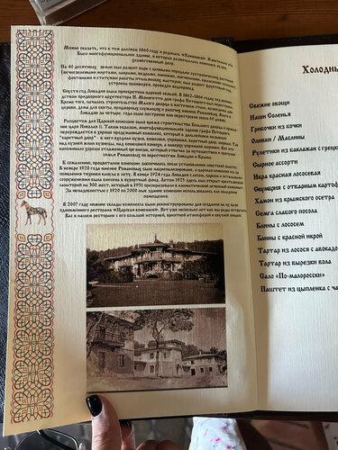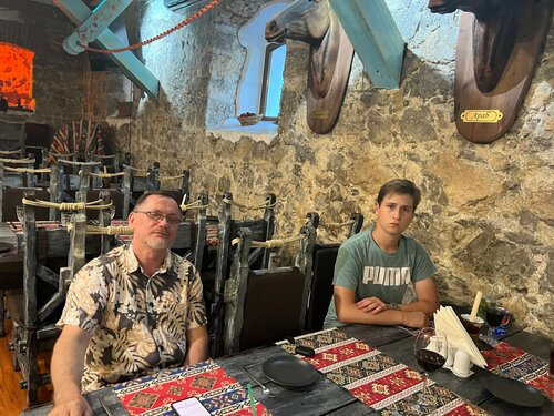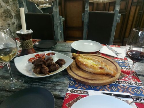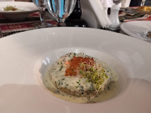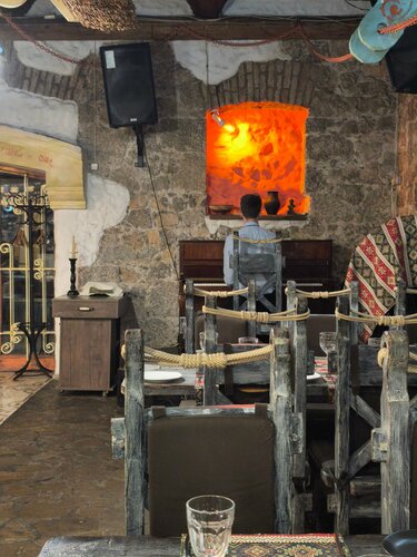 Посетили после Ливадийского дворца. Очень понравилось. Необычный антураж. Живая музыка, молодой человек здорово играл на фортепьяно, полный релакс. Хотелось слушать и слушать. Блюда вкусные. Уха с расстегаем и люля из баранины особенно понравились. Рекомендую к посещению!