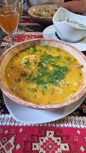 Очень симпатичное место. На обед взяли куриную лапшу и пельмени с уткой. Лапша не жирная, как я люблю. Пельмени (по виду маленькие манты) с кусочком бекона просто отличные. Хорошо и вкусно.