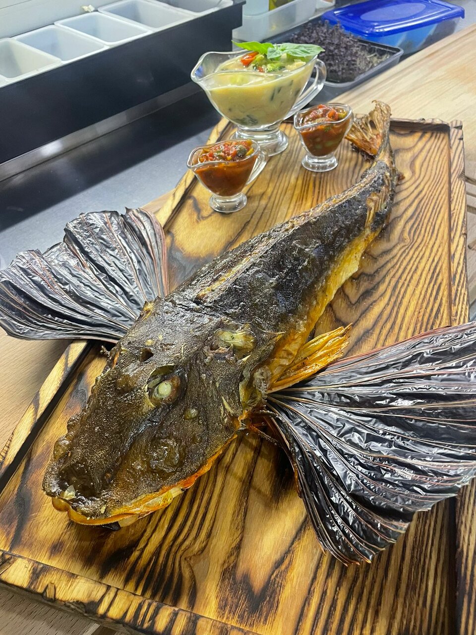 Прекрасная кухня. Блюда интересные и не тяжелые. Щи с ананасами просто отпад. Дорого.